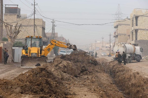 يستمر فريق الجهد الخدمي والهندسي في تقديم الخدمات للمناطق ضمن أعمال التبليط في منطقة ملحق المعسكر ضمن قاطع بلدية الغدير حيث تبلغ المساحة الكلية للشوارع في هذه المنطقة مئتي ألف متر مربع. تم إنجاز أعمال شبكات المياه والمجاري بطول تسعة كيلومترات بالإضافة إلى أعمال الجوانب بطول ستة وثلاثين كيلومترًا. وصلت نسبة الإنجاز في هذه المنطقة إلى سبعين بالمئة وتم تحديد فترة خمسة وأربعين يومًا لتسليم المنطقة بالكامل. كما أن الأعمال مستمرة في بقية المناطق مثل الرصاصة والكرط ومنطقة سبق صور حيث بلغت نسبة الإنجاز في مناطق الرحلات وحي الزهراء ومنطقة العهود حوالي خمسة وستين بالمئة. يوم الأربعاء القادم سيتم وضع حجر الأساس لمنطقة الضباط الثانية في منطقة الغدير بتوجيه من دولة رئيس الوزراء المحترم. كذلك هناك أعمال مستمرة في أحد عشر محافظة، حيث وصلت نسب الإنجاز في ستة من هذه المحافظات إلى مراحل متقدمة. وتم توجيه دولة رئيس الوزراء بضرورة العمل خلال شهر رمضان لضمان استمرارية الأعمال في فترة الليل.